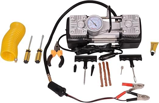 Generic - Heavy Duty 2 Piston Car Tire Inflator with Full Kit Bag and Emergency Light, Works on Lighter and Battery