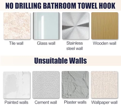- ✅【No-Drill Easy Installation】The hook sticks firmly to any clean flat surface using powerful double-sided adhesive, allowing quick setup without tools, drills, or nails, making it renter-friendly and safe for walls and tiles. 🛠️