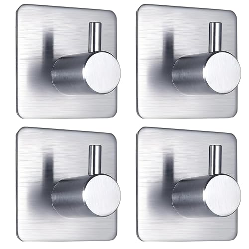 Generic - خطافات لاصقة شديدة التحمل - شماعات حائط لاصقة فائقة القوة للحمامات والمطابخ والأبواب والخزائن؛ تصميم من الستانلس ستيل، عبوة من 4 قطع، لا تحتاج إلى ثقب، تحمل ما يصل إلى 15 باوند.