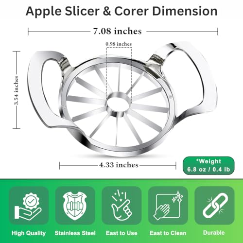 - ✅سهل الاستخدام والتنظيف: ما عليك سوى وضع التفاح والضغط على المقبض ومشاهدة شرائح مثالية تملأ الحاوية. نظف قطاعة التفاح المصنوعة من الفولاذ المقاوم للصدأ بالماء الدافئ أو غسالة الأطباق أو فرشاة التنظيف. امسحها بقطعة قماش وجففها بالهواء لإطالة عمر المنتج. يرجى إعطاء الأولوية للسلامة عند التعامل مع الشفرات الحادة، خاصة أثناء التنظيف.