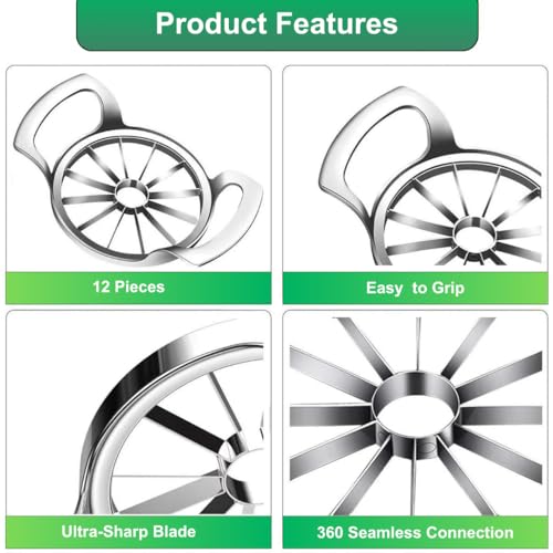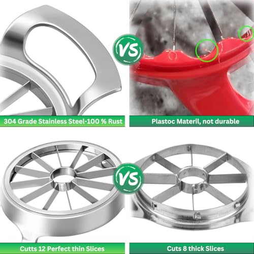 Generic - قطاعة تفاح متينة مكونة من 12 شفرة تقطيع، مصنوعة من الفولاذ مقاوم للصدأ وسهلة الاستخدام، مقوار وقطاعة شرائح للفواكه والخضروات