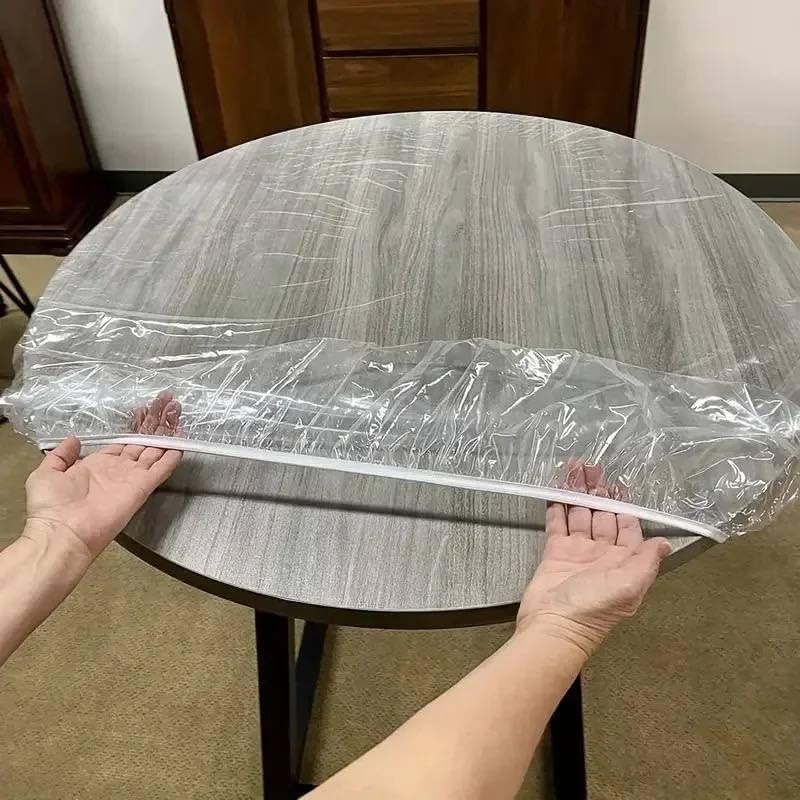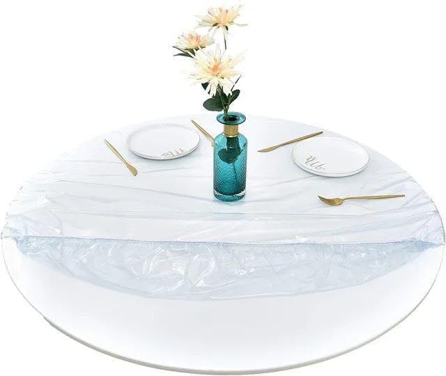 Generic - Heavy Duty Clear Round Tablecloth Indoor Outdoor Elastic Waterproof Wipeable Soft Plastic Table Protector 10 Pack