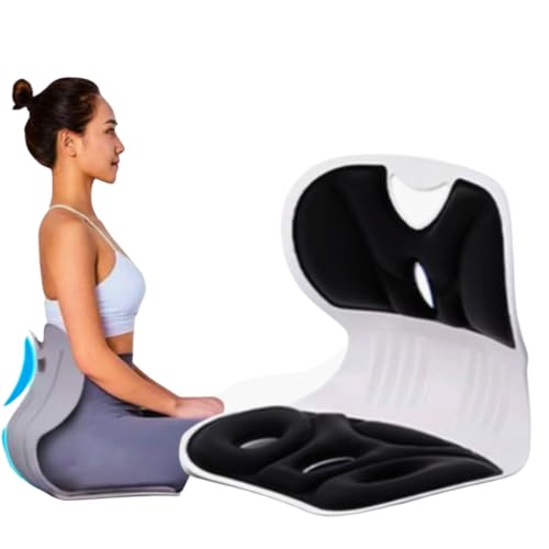 Generic - كرسي مريح متين مع دعم الظهر والقطنية، وسادة تصحيح الوضعية لتخفيف آلام أسفل الظهر، مقعد مضغوط للمنزل والمكتب والسيارة، مقعد 33 سم وظهر مريح 31 سم (أسود)