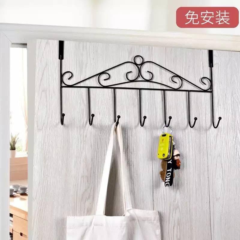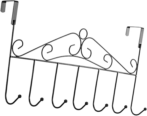 Generic - رف خطاف شديد التحمل فوق الباب - 7 خطافات معدنية للملابس والمناشف والارواب والحقائب - تركيب بسيط بدون ثقب - حل تخزين موفر للمساحة - عبوة من قطعتين