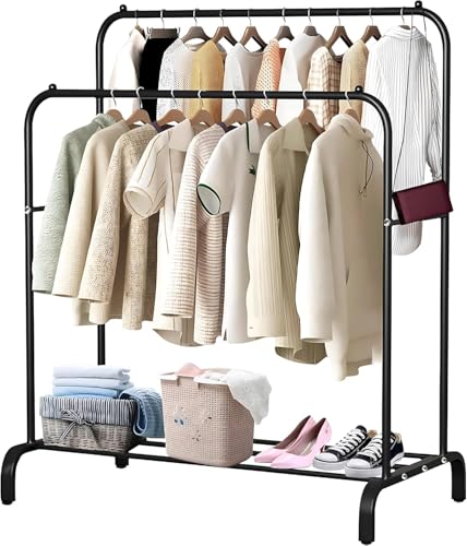 Generic - Heavy Duty Rack Double Metal Clothes Stand with Organizer Racks for Clothes, Bags, Shoes Holds Up to 53 Kilos Size 110 by 54 by 154 cm Black Heavy Duty Rack