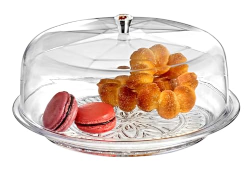 HEC - طبق كيك أكريليك مع حامل من اتش اي سي، مستدير، شفاف .