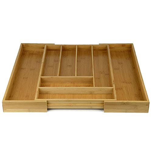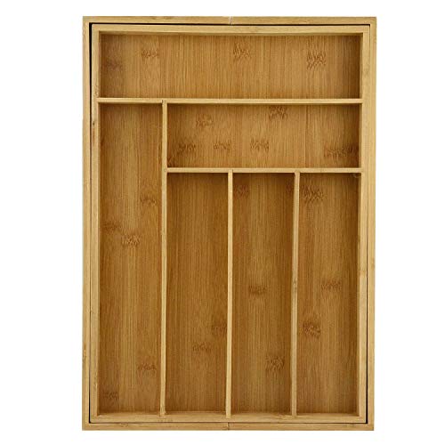 Heim Concept - منظم أدراج وصينية أدوات مائدة بامبو، منظم فضيات وحامل أواني، منظمات تقسيم الأدراج للفضيات وأدوات المائدة والسكاكين في المطبخ من هيم كونسبت