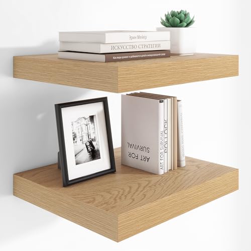Heimlove - Heimlove 12 Inch Deep Floating Shelves, 16 x 12 inches Long Wall Shelf, Large Extra Display Shelf & Storage Shelf, Rustic Wood Wall Shelves for Fireplace Mantel, Oak - 2Pack