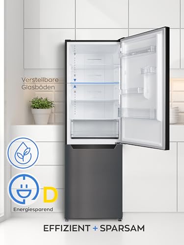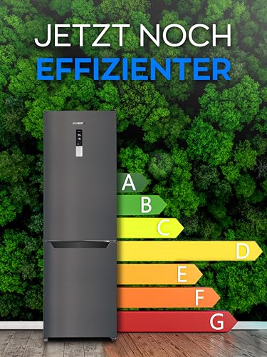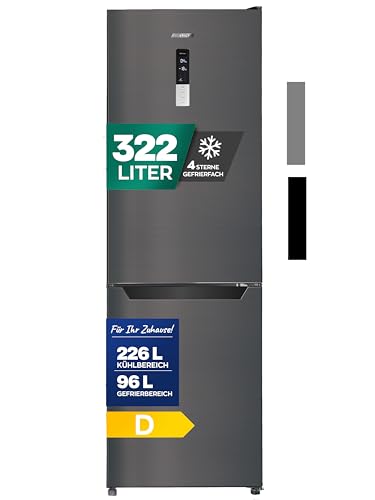 Heinrich´s - Heinrich´s Fridge Freezer Combination with 322 L with Freezer Volume96 L, Total No-FROST, LED Lighting, Door Hinge, Changeable, Quiet 35 dB, Large Freezer Boxes, (six) black (Black, 322)