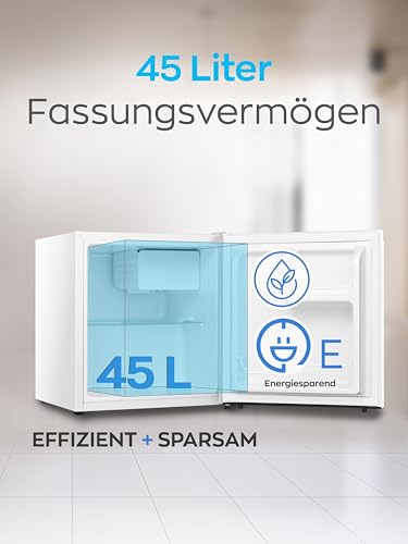 Heinrich´s - ثلاجة مشروبات 45 لتر صغيرة الحجم هادئة 41 ديسيبل مع حجرة فريزر صغيرة مع حجرة فريزر مثالية للمكتب والتخييم والحديقة في الهواء الطلق (ابيض الباين) [فئة الطاقة E]، من هاينريش