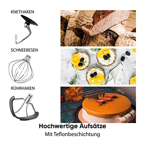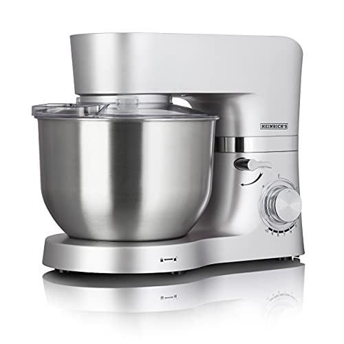 Heinrich´s - محضر طعام من هاينركس بقوة 1300 وات يستخدم كالة صنع وخلط عجين واداة مطبخ للخفق بخطاف للعجين ووعاء ستانلس ستيل، 10 سرعات قابلة للتعديل، مقاس XL، سعة 6.2 لتر، ضوضاء منخفضة (لون فضي)