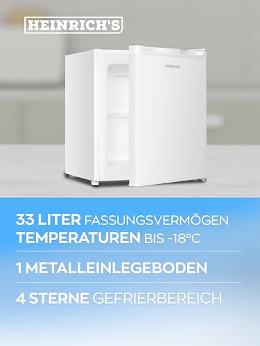 Heinrich´s - Heinrichs Mini Freezer 33 Litres Small Compact Quiet 40 dB -Interchangeable Door Hassle up to -18°C Freezer Perfect for Office, Heinrich´s (White)
