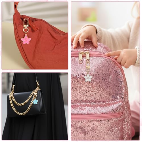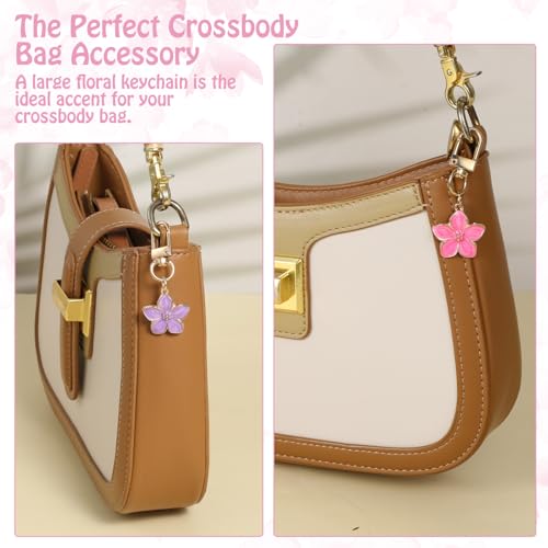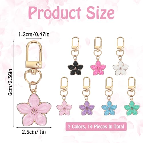 HekouJiub - سلسلة مفاتيح بتصميم زهرة لطيفة للنساء من هيكوجيوب، 14 قطعة، حلية على شكل زهرة جمالية، حقيبة سحب، سحب، حقيبة اليد، حقيبة الظهر، محفظة مفاتيح السيارة، اكسسوارات