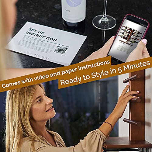 - EASIEST 5 MINUTE ASSEMBLY - Cell phone accessible QR code video instructions and step-by-step manual make assembling this wine kitchen decor a breeze. Bonus printable, frameable wine art adds that elegant finish to your living room wine bar.