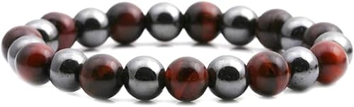 Generic - سوار حجر الدم + عين النمر الاحمر | القوة والتقدير الذاتي للقلق، مصنوع يدويا من احجار عالية الجودة، للرجال والنساء، افضل هدية