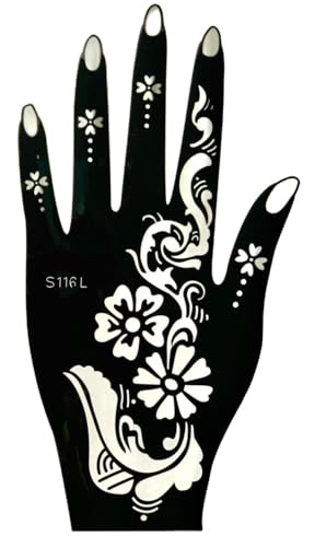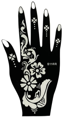 Generic - Hena Tatto Stencil Set for | Hand | Body | Fingure | Face | Hena Art Temporary Tatto for Kids, Girls & Women, Design -2 SHEETS LEFT AND RIGHT - Black, (N-16)