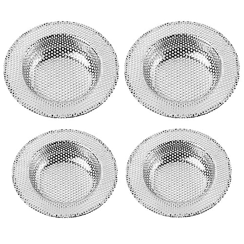 HENGKerCH - 4 PCS Kitchen Sink Strainer Stainless Steel Shower Drain Cover Silver Mesh Hair Filter Food Catcher for Kitchen Sink Bathroom Bathtub Shower Drain