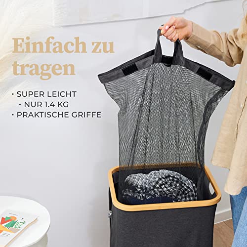 HENNEZ - HENNEZ Laundry Basket with Lid – Bamboo Handle Laundry Basket – Foldable Laundry Basket 100 L – Laundry Bin for Laundry Hampers, Dark Grey