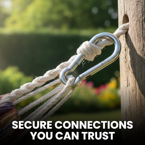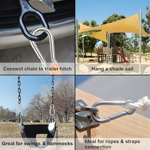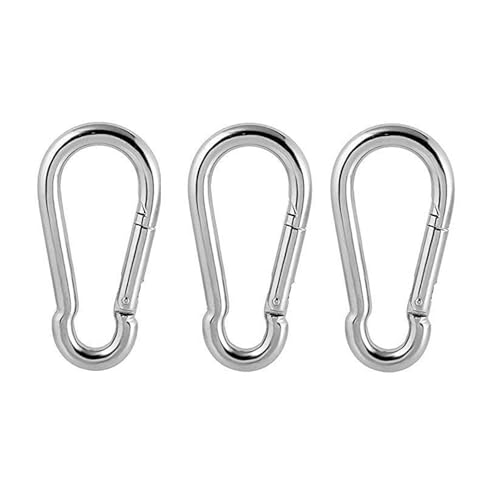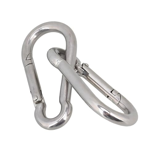 Hepiack - خطاف من الفولاذ المقاوم للصدأ، 8 ملم، حلقة تثبيت متينة مع قفل أمان لرفع الأثقال والتسلق والجيم والمنزل | خطاف معدني متعدد الأغراض من هيبياك باللون الفضي