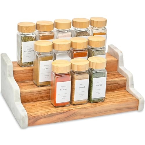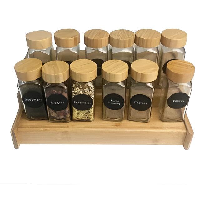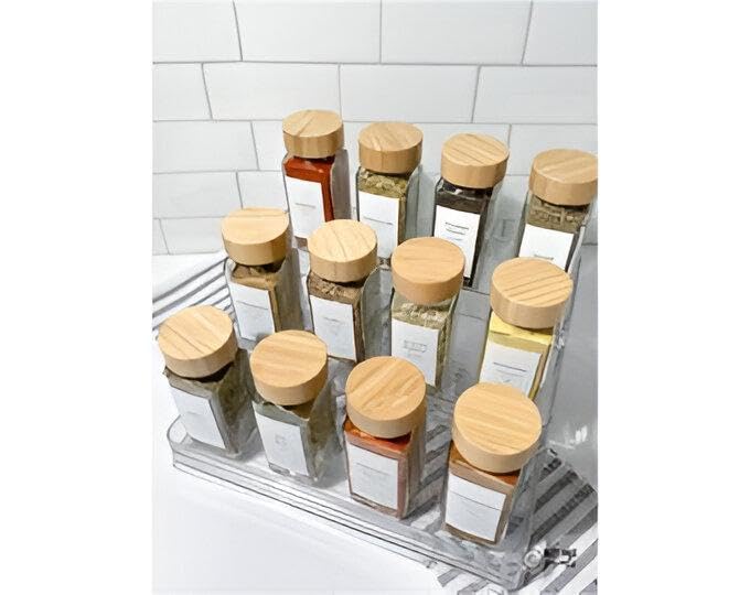 - An ideal choice for organizing spices with a touch of elegance in your kitchen, this 12-piece acrylic kit combines transparency for quick identification with a chic holder that elevates everyday cooking, appealing to serious home cooks who value every detail.