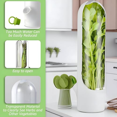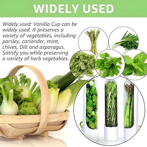 - This multipurpose and versatile herbal storage cup is able to maintain a variety of vegetables including parsley, coriander, mint, leek, dill and asparagus Whether you are a professional chef or home cook, this container meets various storage needs, keeping herbs fresh and tasty. Its sturdy construction means it can withstand regular use, making it an indispensable tool in any kitchen, perfectly suited for maintaining a variety of culinary herbs.
