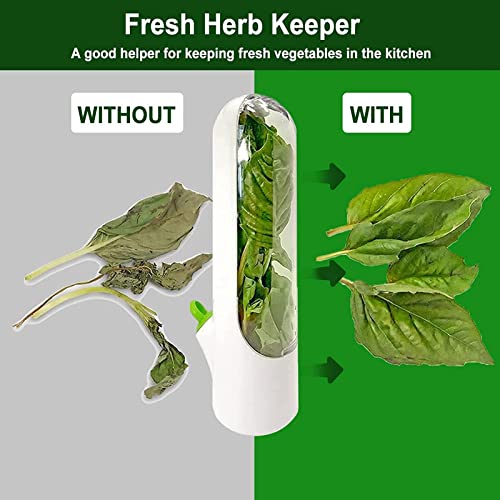- 【Fresh Herb Keeper Container】: Our BPA-free containers are designed to prolong the life of your fresh herbs, while being easy to use and fit into any fridge door.It can make vegetables not perishable, keep them fresh and solve daily problems in the kitchen. It can also be used to hold tea, grains, pasta,herbs,mint,parsley,chives, rosemary,oregano,thyme,dill,etc.Fresh Herb Keeper is a good helper for keeping fresh vegetables in the kitchen.