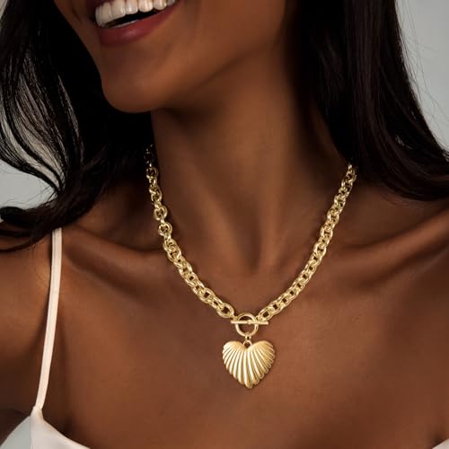 HERIER - Cute Heart Necklace Dainty 18k Gold Plated Tiny Heart Pendant Choker Necklaces Small Gold Love Open Heart Chain Necklace for Women Simple Gold Necklace for Women Trendy Jewelry