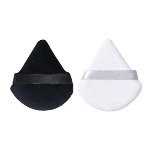 Hermania - Hermania 2 Pieces Triangle Velour Powder Puff for Concealer and Loose Powder Face Cosmetic Washable Reusable Soft Plush Foundation Sponge Wet Dry Velvet Makeup Tool (Black & White, 2)