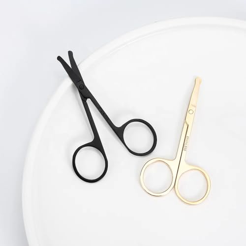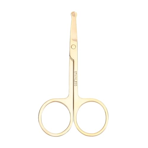 Hermania - مقص من الستانلس ستيل بطرف منحني ومستدير لقص شعر الأنف وتصفيف شعر الحواجب من هيرمانيا (ذهبي)