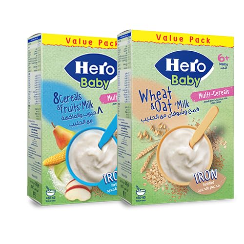 Hero Baby - Hero Baby 8 cereal and fruits with milk 300 gm with Wheat & Oat cereal with Milk 300 gm