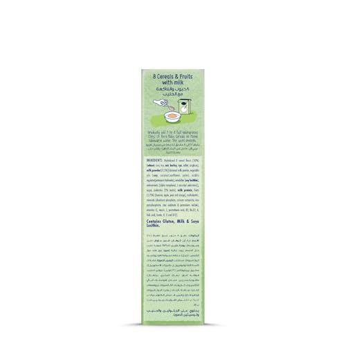 - سيريال معزز بعدد 13 فيتامين و6 معادن والأحماض الدهنية أوميجا 6 والبريبايوتكس