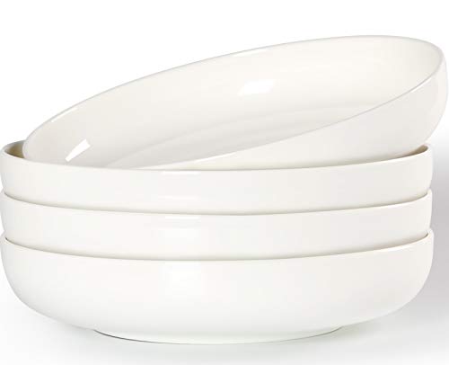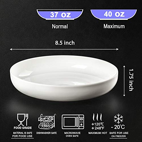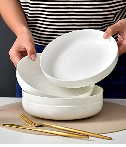Hesen - Hesen 8.5 inch Pasta Bowls set of 4, 40 Ounces Shallow Salad Bowl Set, Off White Ceramic Pasta Serving Bowl Plates