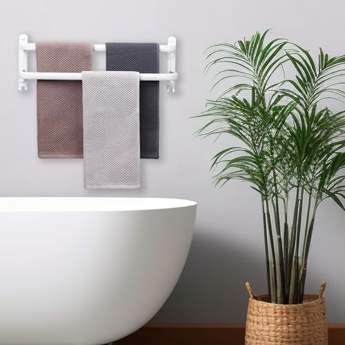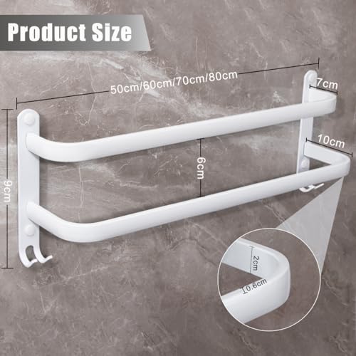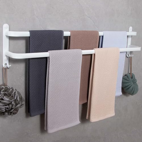 Hewwooy - Towel Rail No Drilling / Hole Punching Towel Rail Large 80 cm Wall Towel Rail with Hooks 2-Tier Wall Shelf Towel Bar for Bathroom Kitchen Toilet