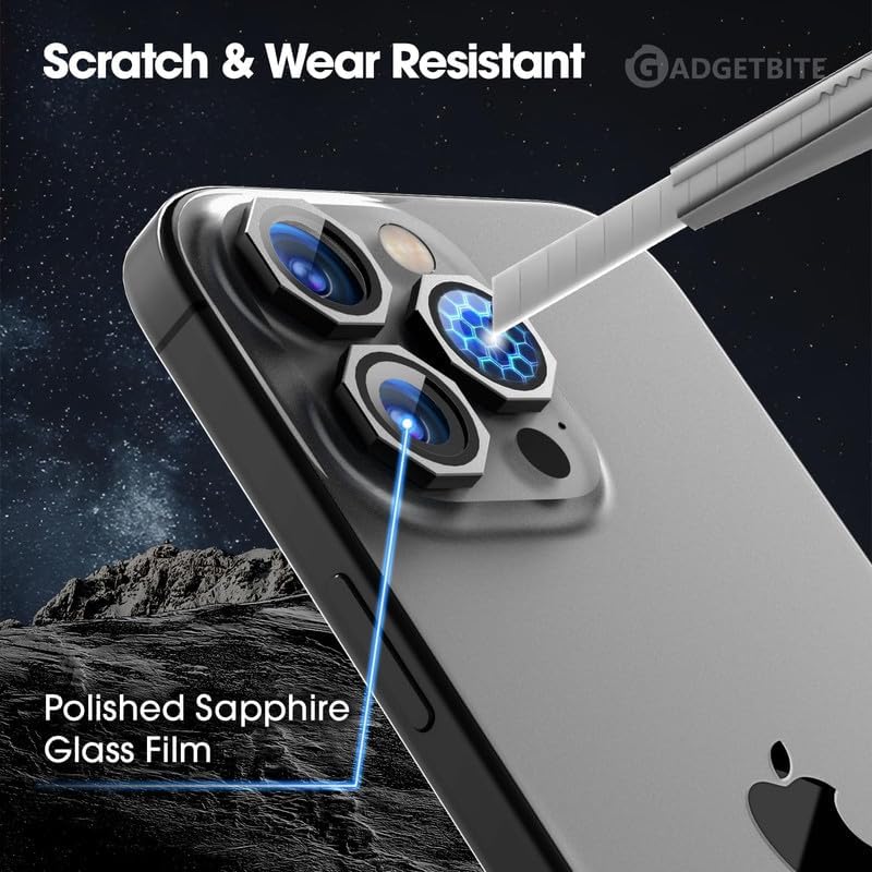 ELMO3EZZ - Hexagon Lens Protector for With iPhone 14 Pro/14 Pro Max 9H Tempered Glass Camera Cover with Metal Ring, Scratch-Resistant, Decorative Camera Lens Protection - 3Pack (Black)