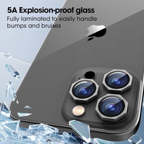 Whats Mob - Hexagon Metal Camera Lens Protector Compatible with iPhone 11 Pro Max – Tempered Glass Lens Cover, Anti-Scratch, HD Clarity, Case Friendly (Black)