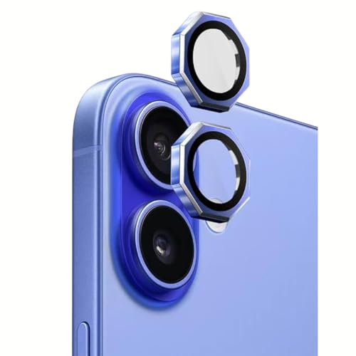 Whats Mob - Hexagon Metal Camera Lens Protector Compatible with iPhone 16 Plus / 16 – Tempered Glass Lens Cover, Anti-Scratch, HD Clarity, Case Friendly (Blue)