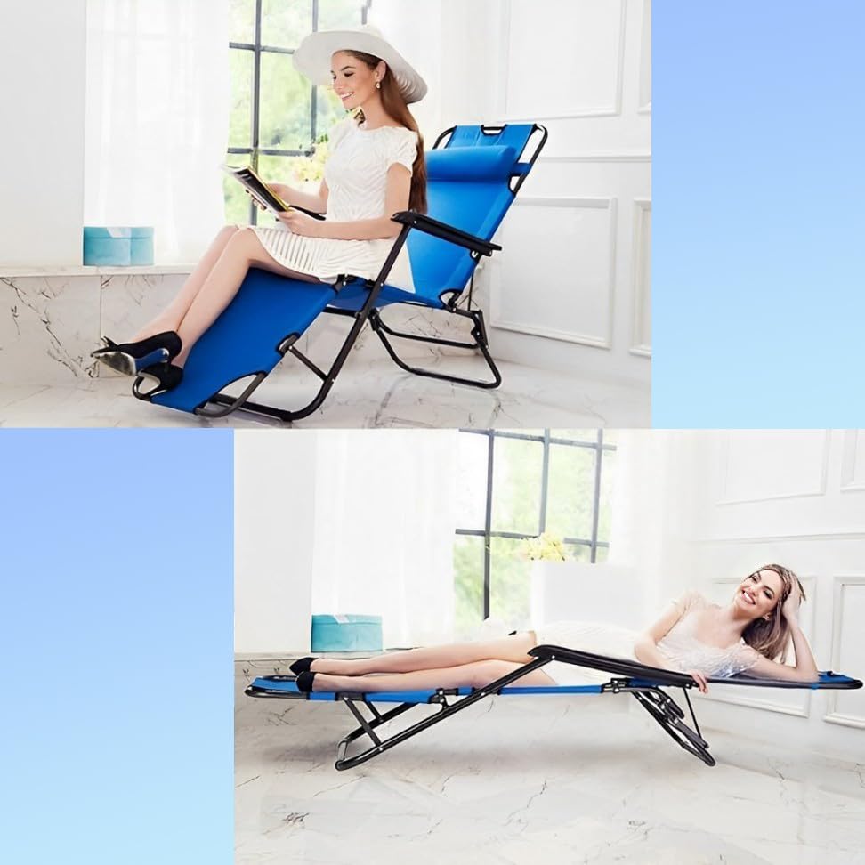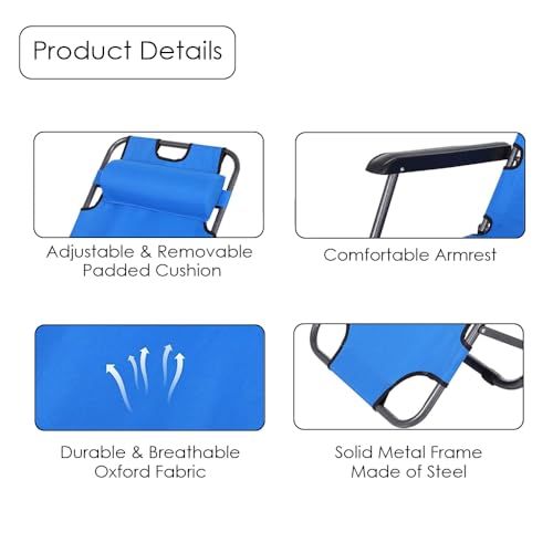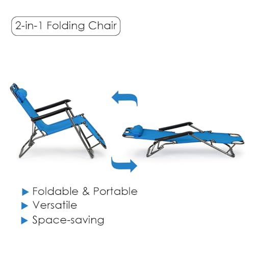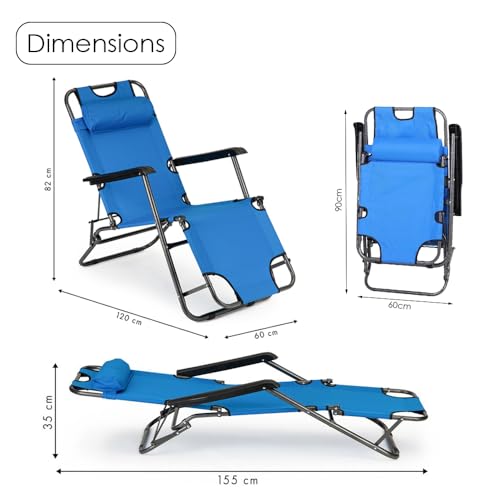 HEXAR - HEXAR® 2-in-1 Lounger, Outdoor Lounger with Headrest, Folding Beach Chair and Convertable to Bed, Garden Chair with 2 Levels, Metal Frame Oxford Fabric Chair (GREEN LOUNGER)