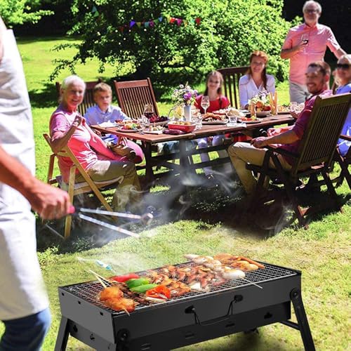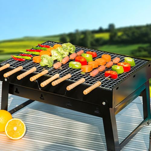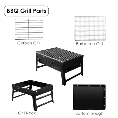 HEXAR - HEXAR® Portable Charcoal Grill,44x29cm Folding Portable BBQ Charcoal Grill Compact Tabletop Mini Smoker Small BBQ Grill Outdoor for Travel Backyard Picnic Beach (PORTABLE GRILL)