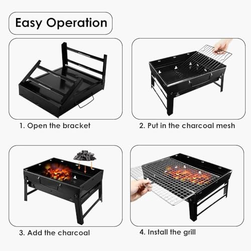 - FOLDING PORTABLE GRILL DESIGN: The HEXAR charcoal grill is user-friendly and requires no assembly. Simply unfold it when you're outdoors and start grilling right away.