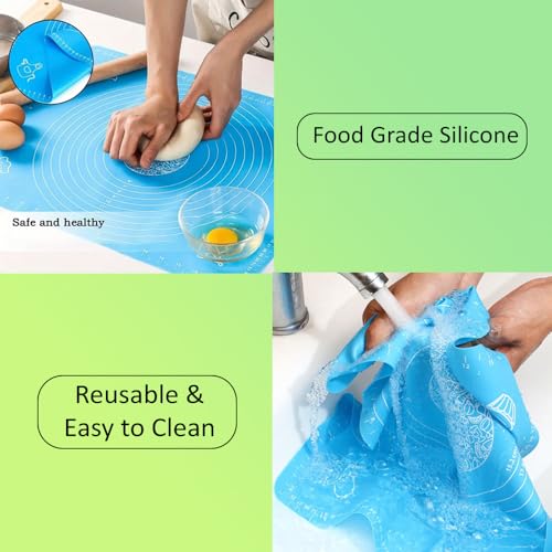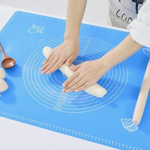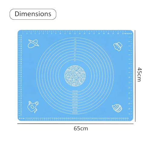 - GREAT SIZE: This specially designed silicone pastry/baking mat measures 65cm by 45cm. It features scales in both centimeters and inches. Using this mat will save you time and effort, making baking more enjoyable.