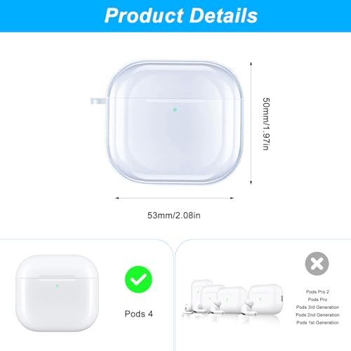 HexinYigjly - Case Compatible with AirPods 4, Clear Cover for AirPods 4 Case, Shock Resistant & Drop Protection, with Lanyard
