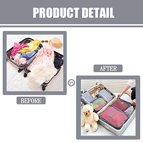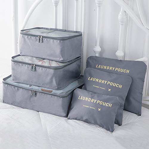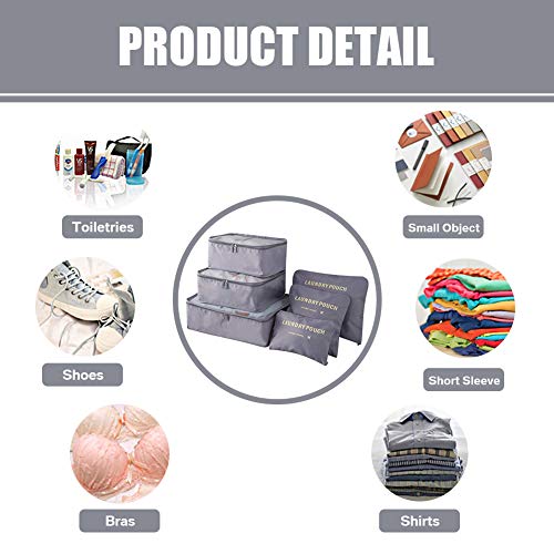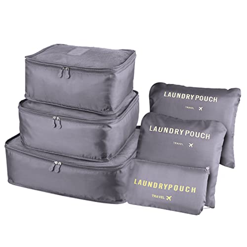 HEYOMART - 6 PCS Travel Packing Cubes Set for Travel Luggage Organiser Storage Bag Compression Pouches Clothes Suitcase with Drawstring Bag, Grey, 6 pcs,