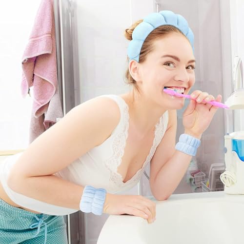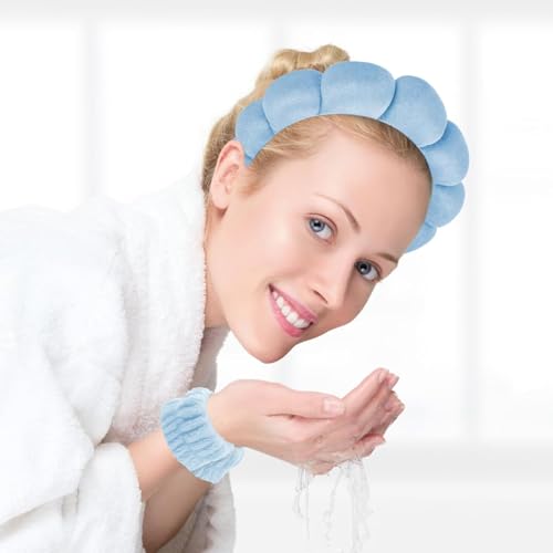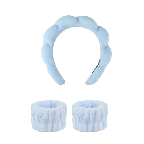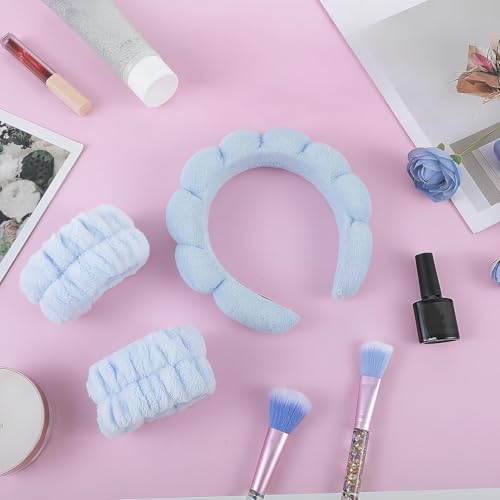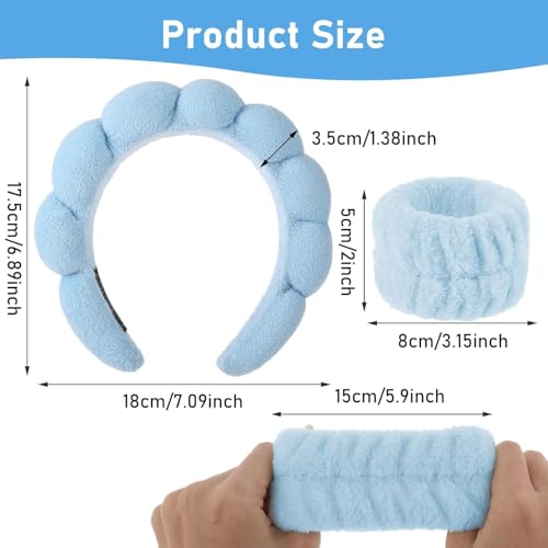 Heyumybit - Spa Headband for Washing Face Wristband Set,3PCS Sponge Headbands for Girls Skincare Makeup,Bubble Skincare Headbands with Face Wash Wristbands