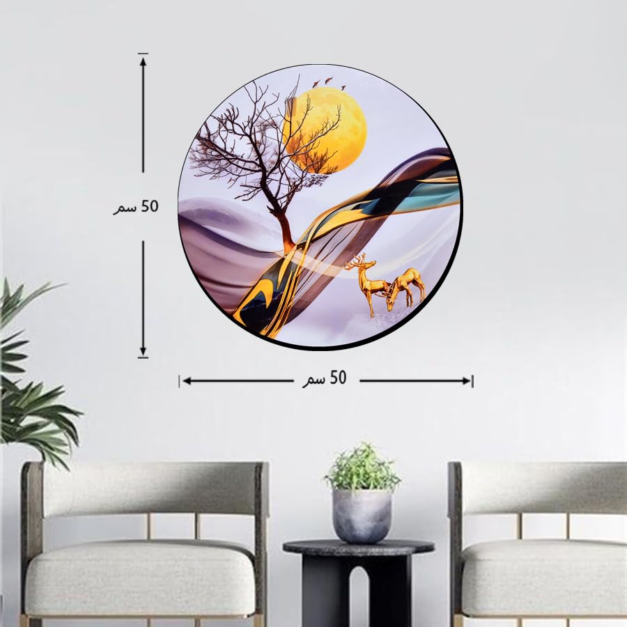 Egypt Decoration - HFR Round Wooden Wall Art Panels (50x50 cm) – Modern Interior Wall Decor - Easy-to-Install Decorative Art Set for Home and Office (Pure)