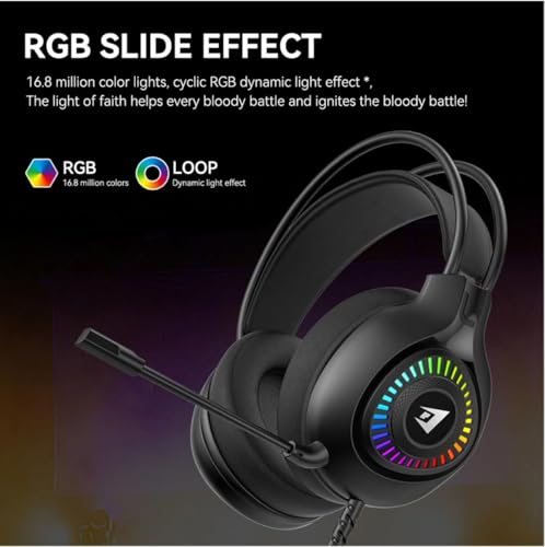 Generic - HG01 Professional Gaming Headset with Multi-Color RGB Lighting, 3.5mm Surround Sound, Noise Cancelling Mic, Black