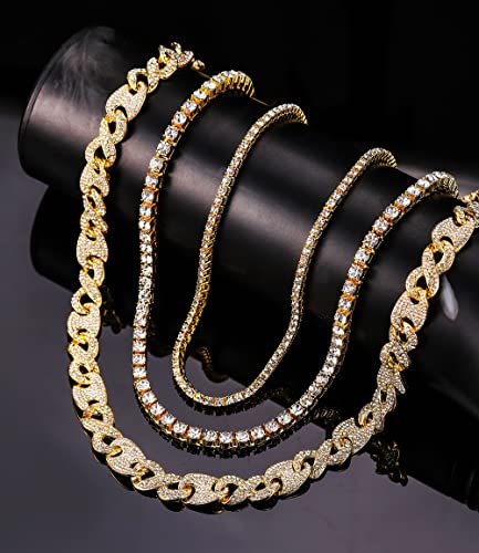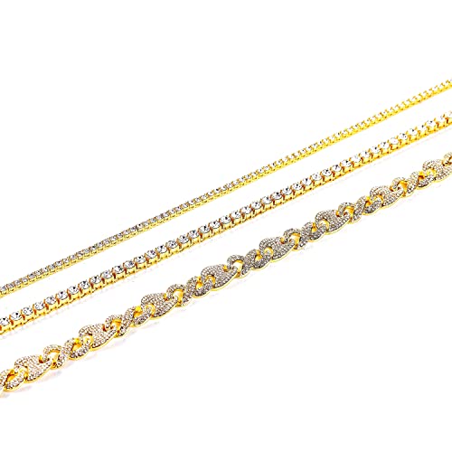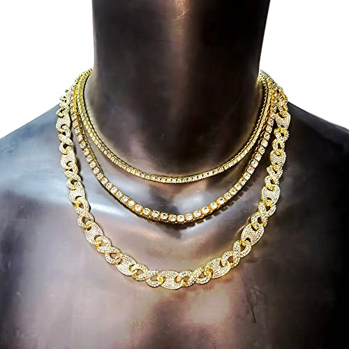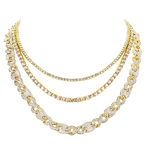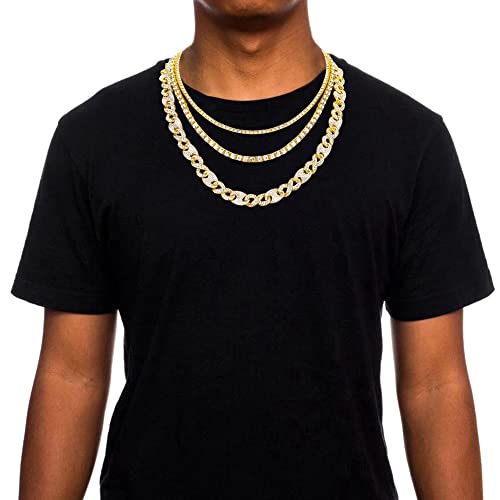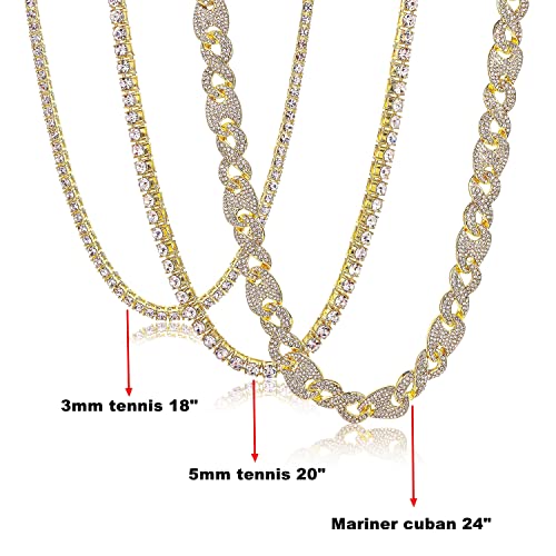 HH BLING EMPIRE - HH Bling Empire Gold Tennis and Cuban Link Chain for Men,Iced Out Mens Diamond Cuban Chain Necklace Sets,Hip Hop Rapper Jewelry Chains-3 Pcs 18/20/24 Inch