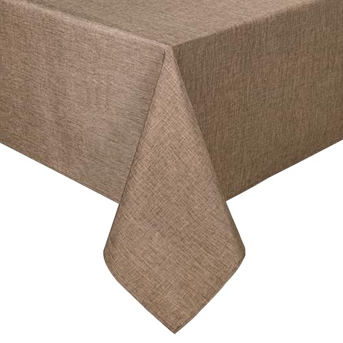 Hiasan - هيسان مفرش طاولة مستطيل من الكتان الصناعي - مقاوم للتجعد والبقع قابل للغسل للمطبخ وغرفة الطعام والعطلات والعشاء، كاكي، 54 × 80 انش