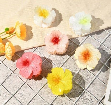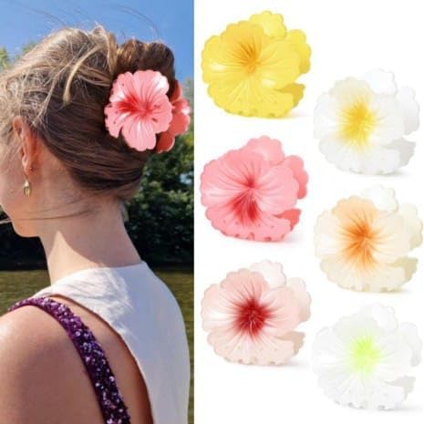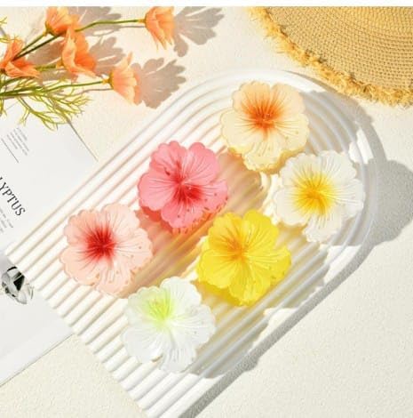 Shivashay - Hibiscus Flower Hair Claw Clips, Pack of 6, Tropical Design for Thin & Thick Hair,Claw clip for girl, hair accessorice