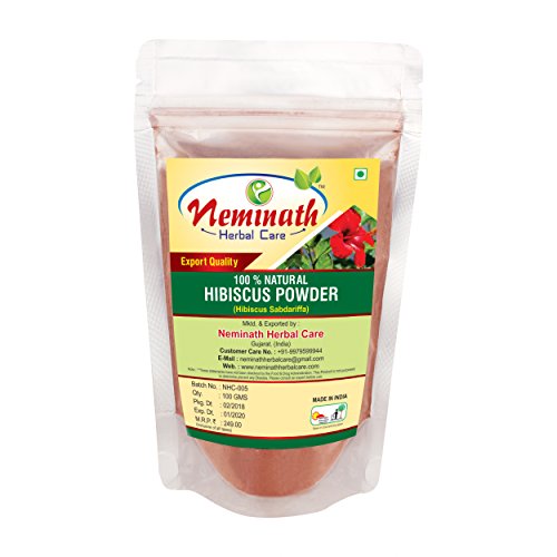 neminath herbal care - مسحوق كركديه طبيعي للشعر ومسحوق زهرة جودال نقي 100% من نيمناث هيربال كير، مسحوق زهرة الكركديه للشعر الرطب بشكل طبيعي (روزا سينينسيس)، 100 جرام، عبوة من قطعة واحدة