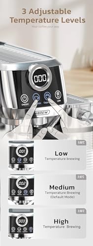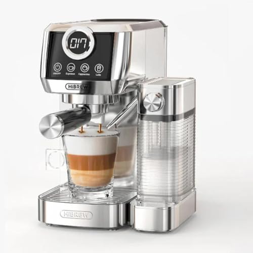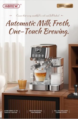 HIBREW - HIBREW H13A Semi Automatic Coffee Machine, Coffee Maker, 20 Bars, Strong steam Foaming system, 6 coffee modes, Dual boiler system, Removable milk tank, Stainless Steel.